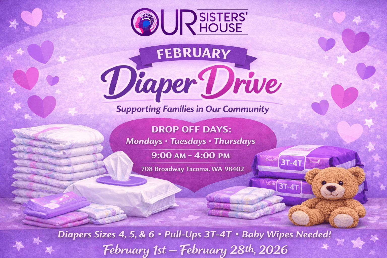 For the month of February 2026, Our Sisters’ House will be hosting a Diaper Drive to support families in our community. Community members are invited to […]