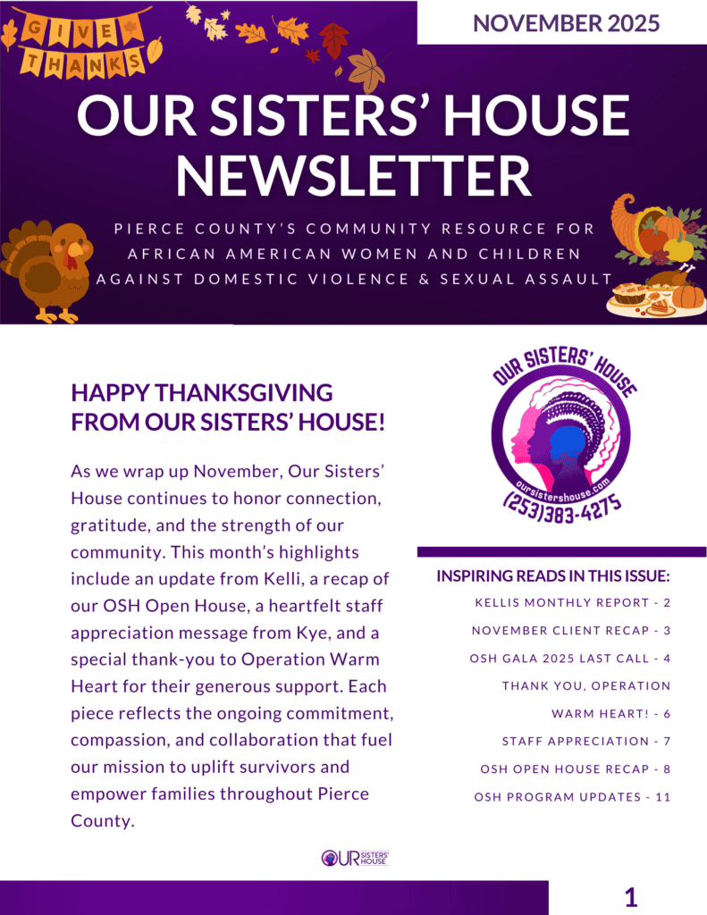 Stay connected with Our Sisters’ House. Sign up to receive monthly updates on our programs, events, and the impact we’re making together in the community.
